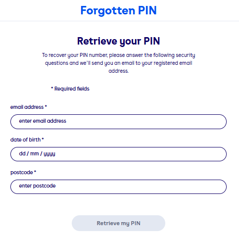 If you’ve forgotten your PIN, don’t stress, we’ve got that covered. To retrieve your PIN, just head to our Forgotten PIN section of the website, fill in your details, and you’ll receive a PIN reminder by email. If you haven’t got this yet, have a look in your junk mail as it may be there.